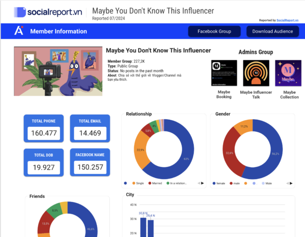 Khám phá chân dung khách hàng tiềm năng của bạn: Báo cáo này sẽ cung cấp cho bạn cái nhìn sâu sắc về thành viên của cộng đồng, bao gồm: độ tuổi, giới tính, sở thích, hành vi trực tuyến,….Từ đó, bạn có thể xây dựng chân dung khách hàng lý tưởng, hiểu rõ hơn về nhu cầu và mong muốn của họ. Với những thông tin này, bạn sẽ dễ dàng điều chỉnh chiến lược tiếp thị để đạt hiệu quả cao nhất. Hãy tưởng tượng bạn có thể tạo ra những nội dung cực kỳ hấp dẫn và trúng đích, tăng tương tác và chuyển đổi khách hàng tiềm năng thành khách hàng thực tế.